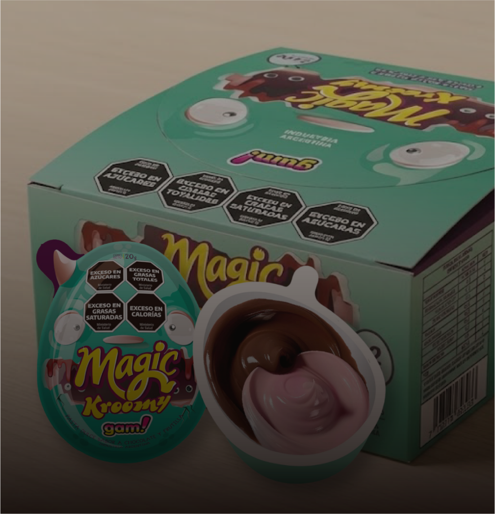 Huevito con juguetes coleccionables y Kroomy sabor frutilla y chocolate.